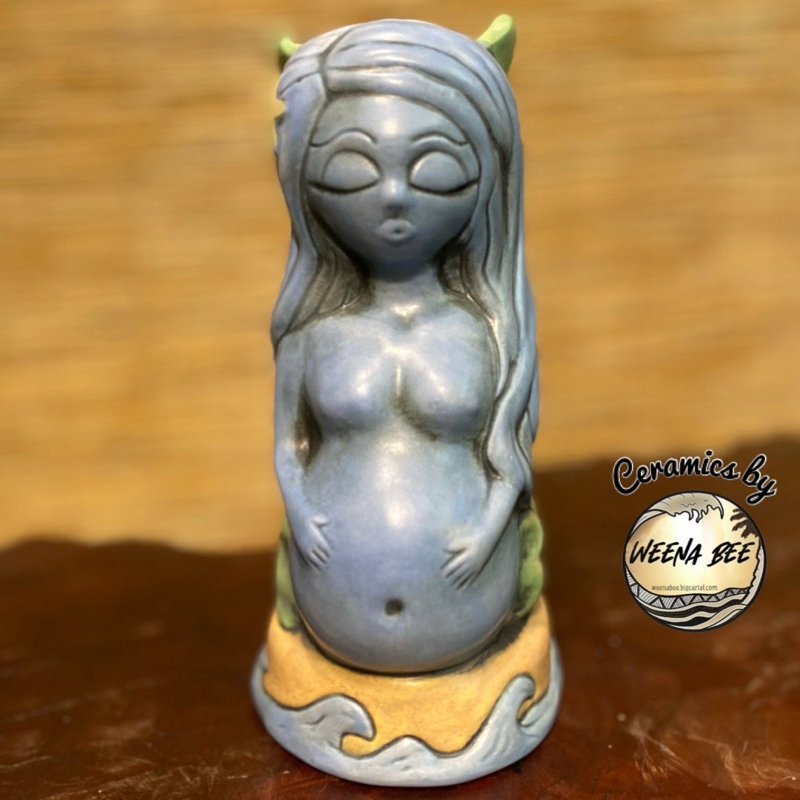 MerMom is a collaboration between Ken Ruzic and myself Chrissy Weena. Only one mold was made and only 10 MerMom Gluggles exist so far. Designed from Ken Ruzic's "Abandoned Siren" painting and inspired by the classic Gluggle.