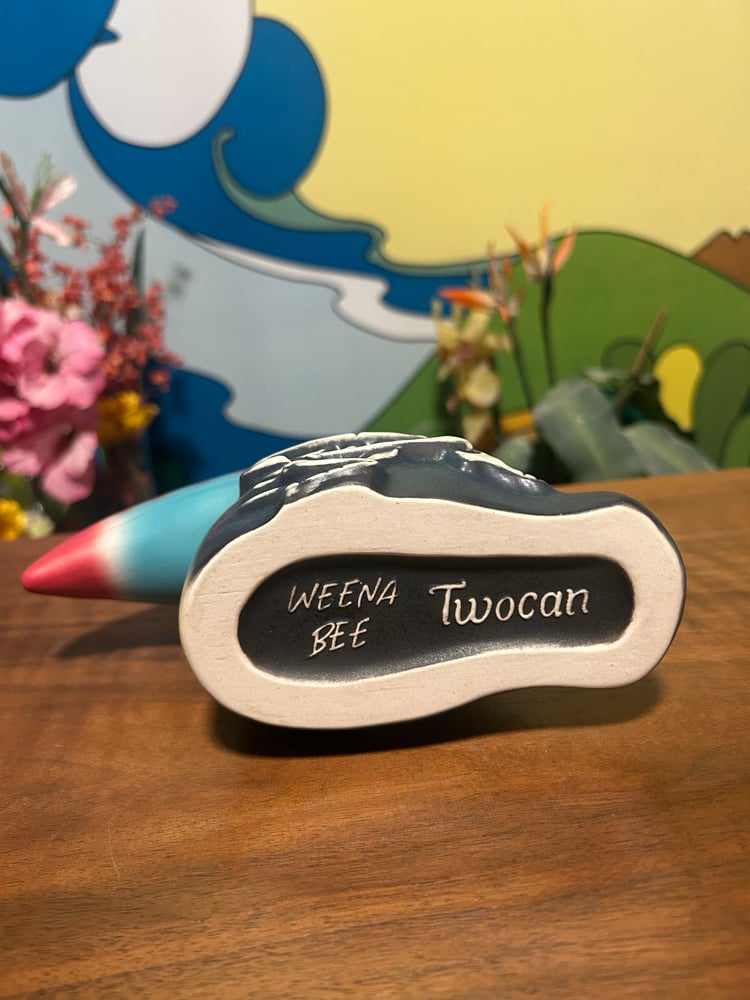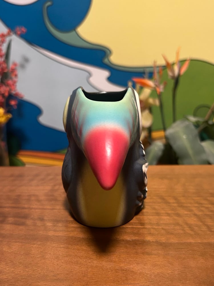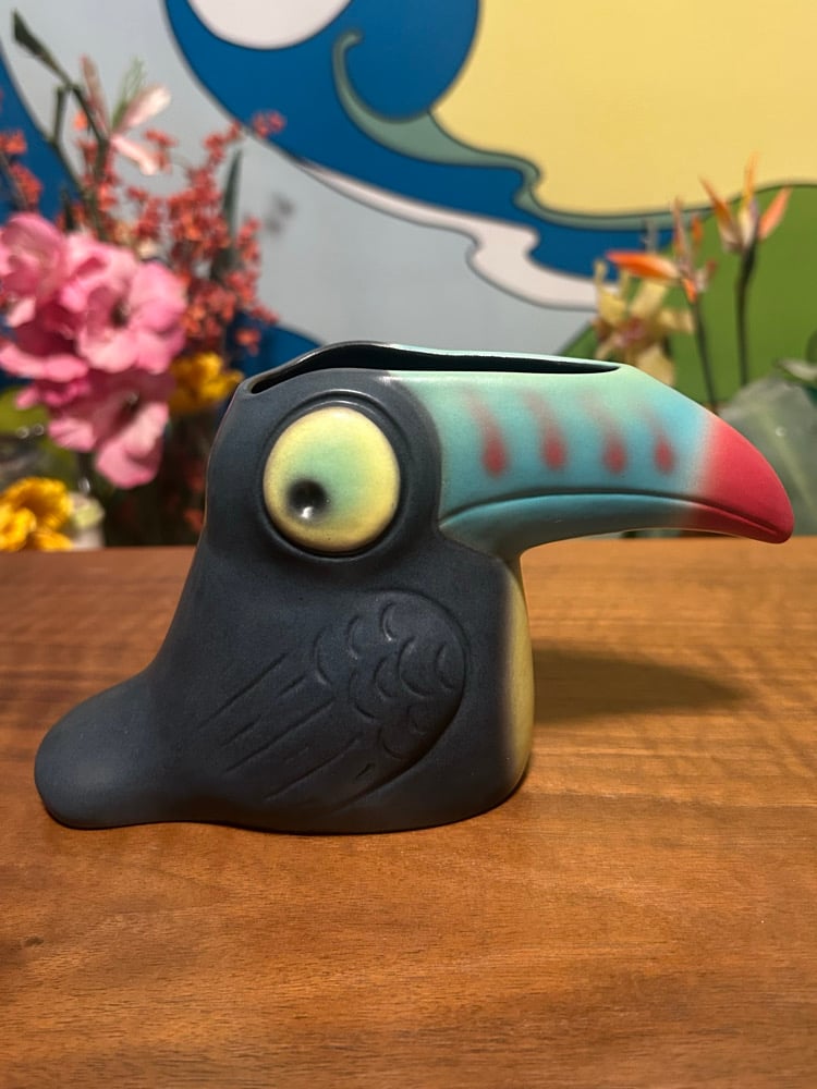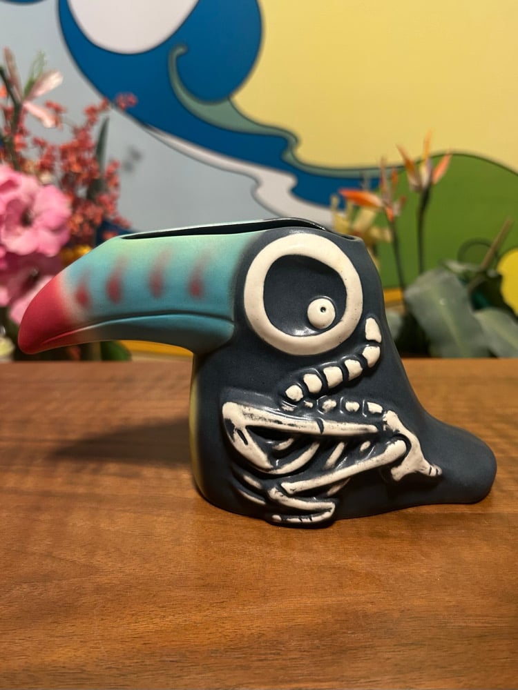 Meet Twocan — a daring two-in-one ceramic cocktail mug where life and death perch side by side. One half bursts with tropical vibrance and jungle mischief, while the other reveals a skeletal toucan staring back. Inspired by my 2022 “Son of Sam” painting shown at the Tiki Oasis Pop-Up Art Show, this piece is a nod to the fine line between beauty and bones.